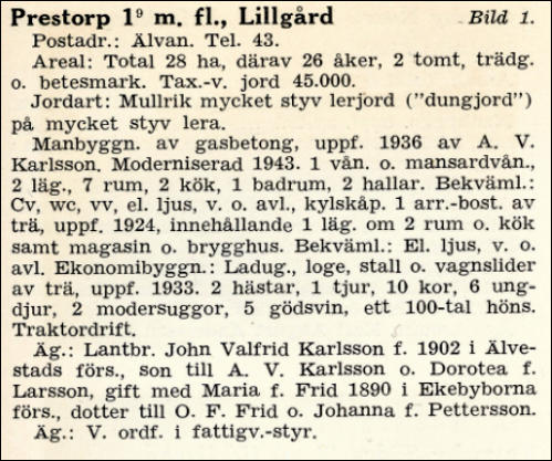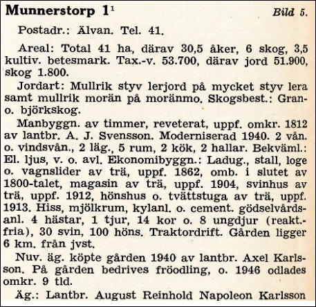 Under förenämnde Herres tid är ock Gården förbättrad ifrån 18 til 40 tunnors Utsäde, och ifrån 60 til 650 a 700 lass Hö i medelmåttig årswäxt. Til Gården är tilräckligt Mulbete och Skog, Fiske uti Swart- eller Stor-ån, åtskilliga stora