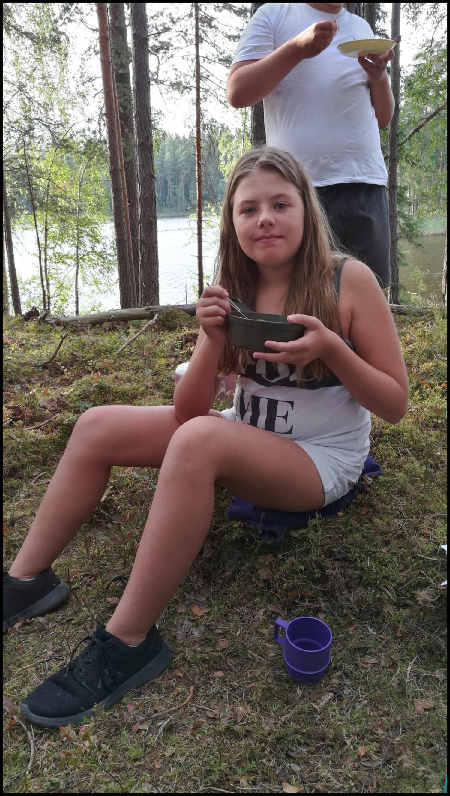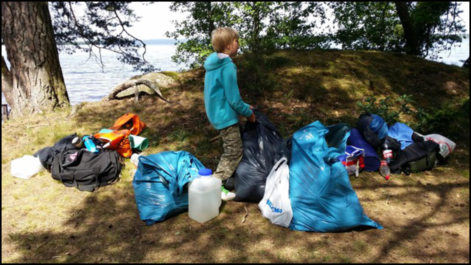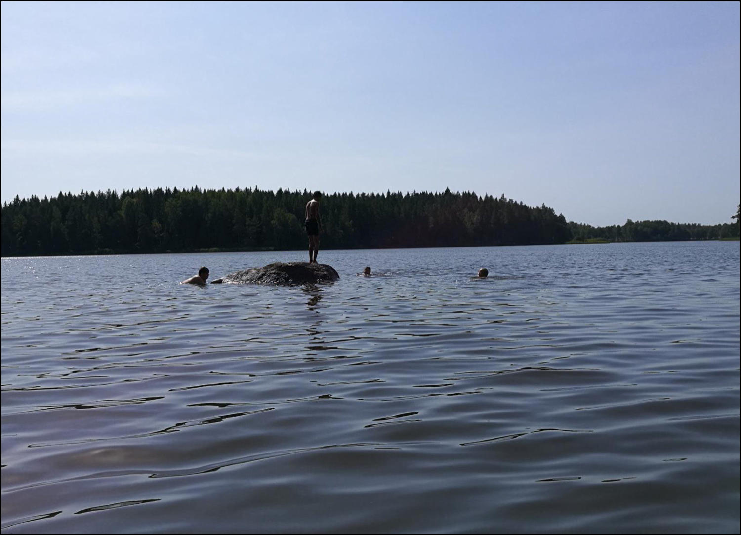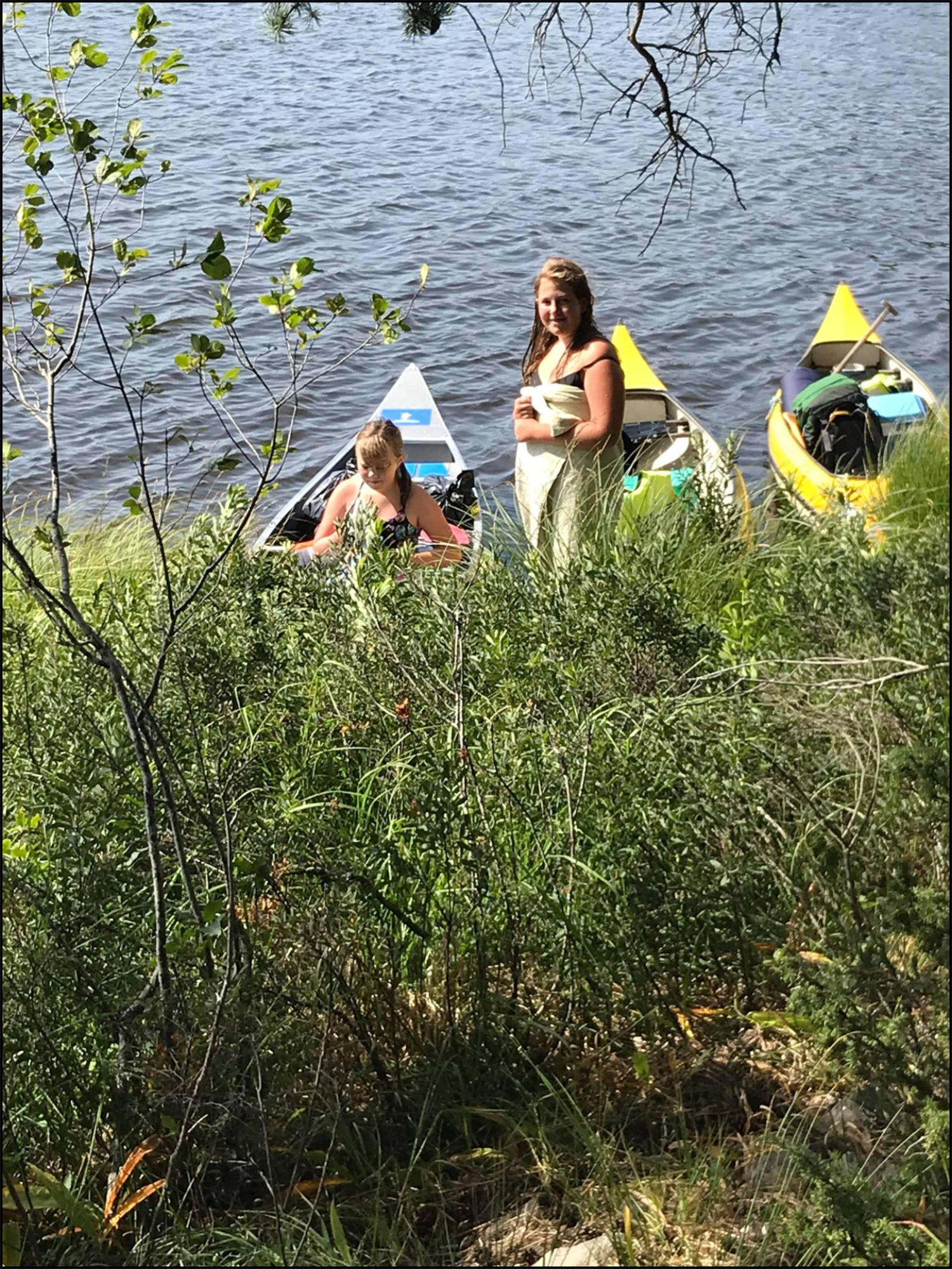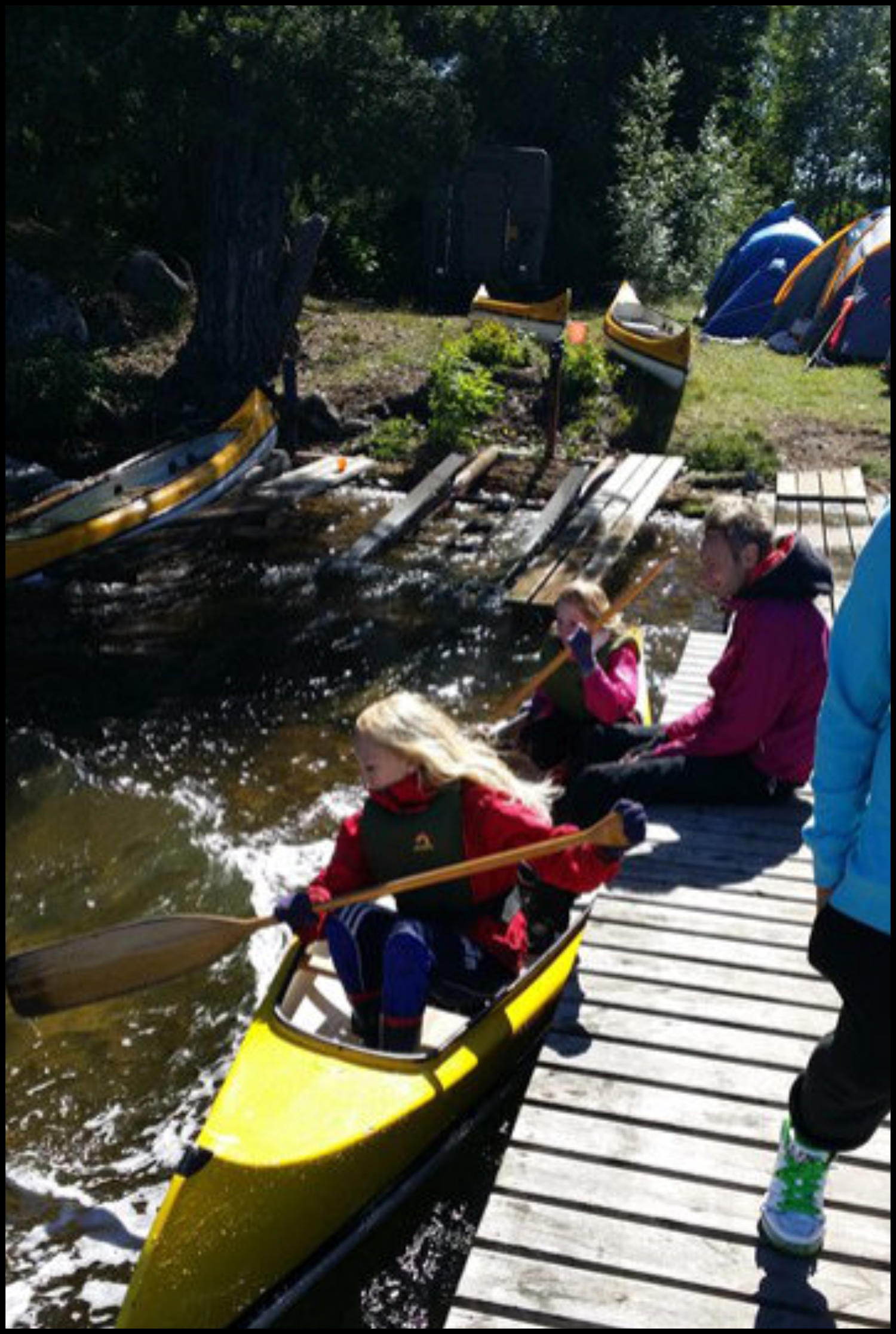 Vi sov under vindskydd, och några sov i tält. Efter frukost på morgonen blev det paddling igen. Mera bad och lunch innan vi vände