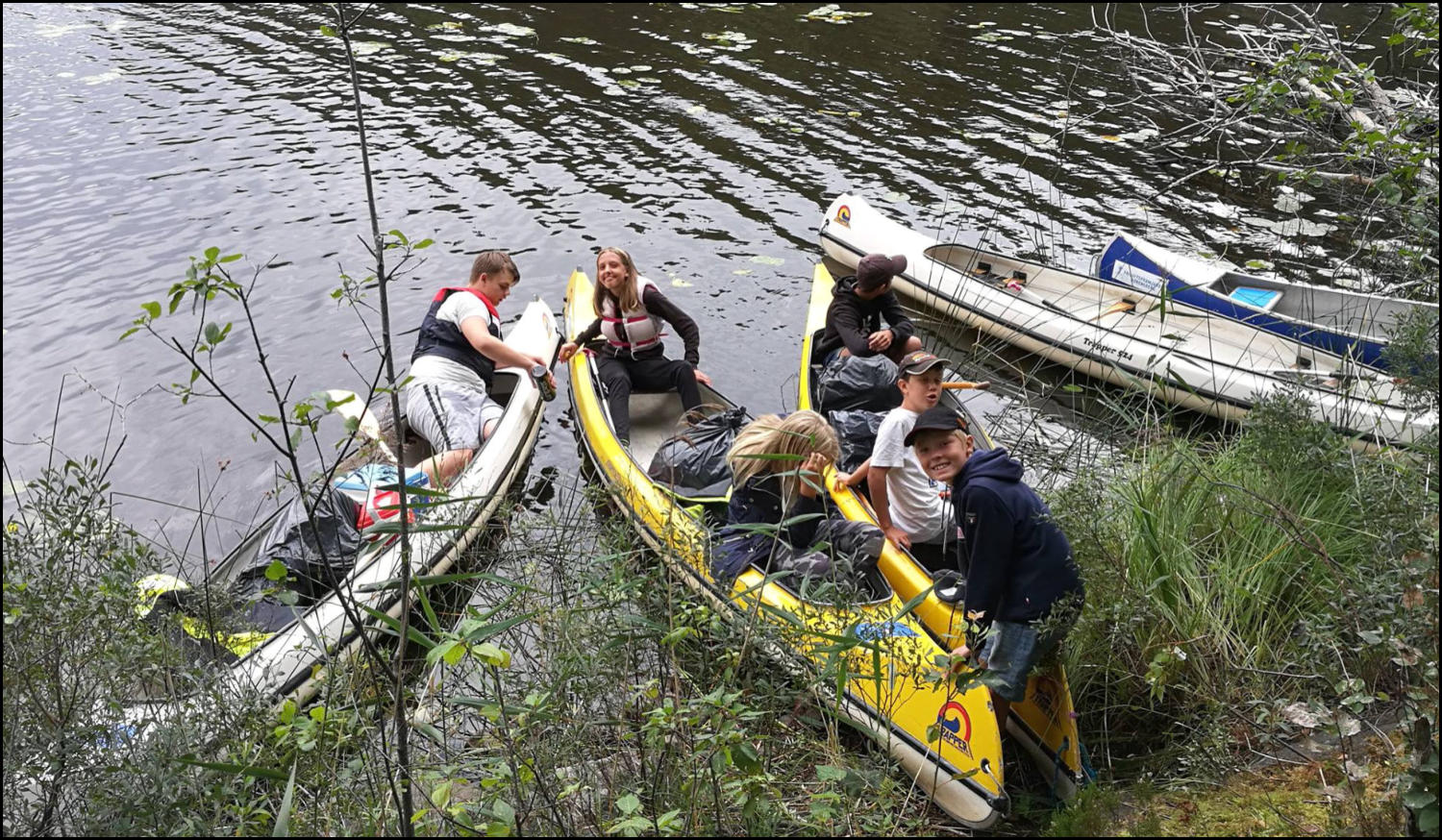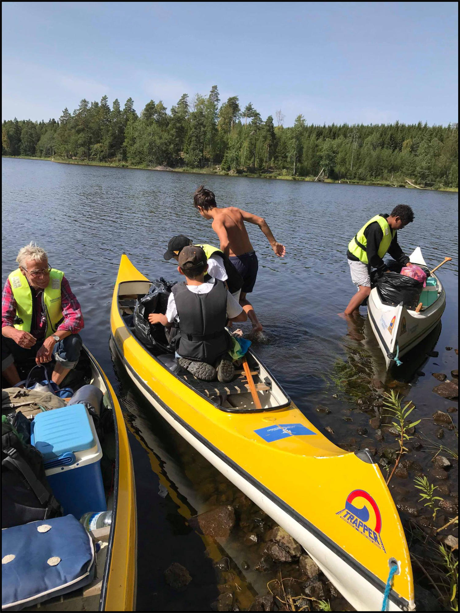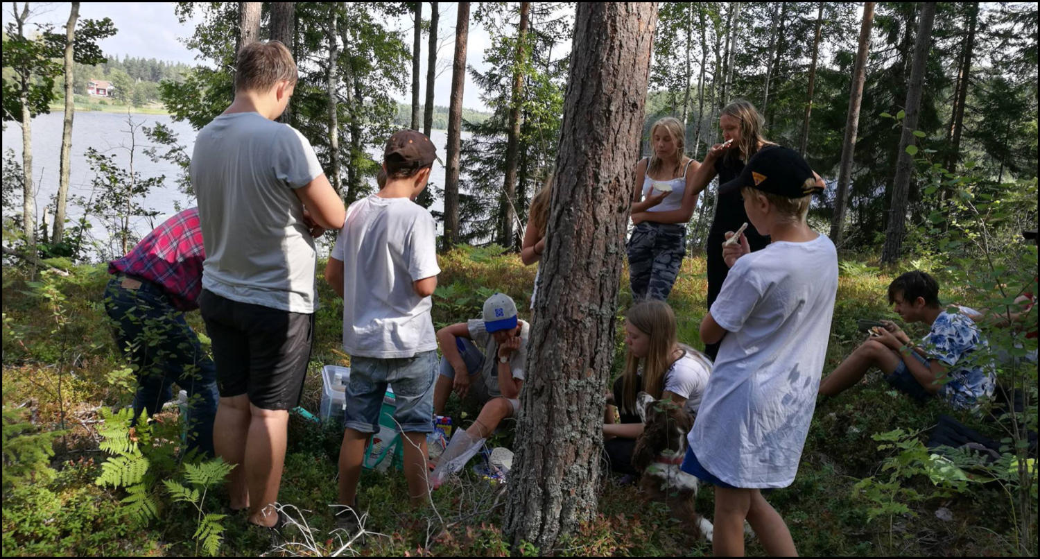 Det blev ett lyckat kanotläger! Ungdomarna badade, paddlade kanot, gjorde massor barkbåtar, kastade kottar, umgicks med