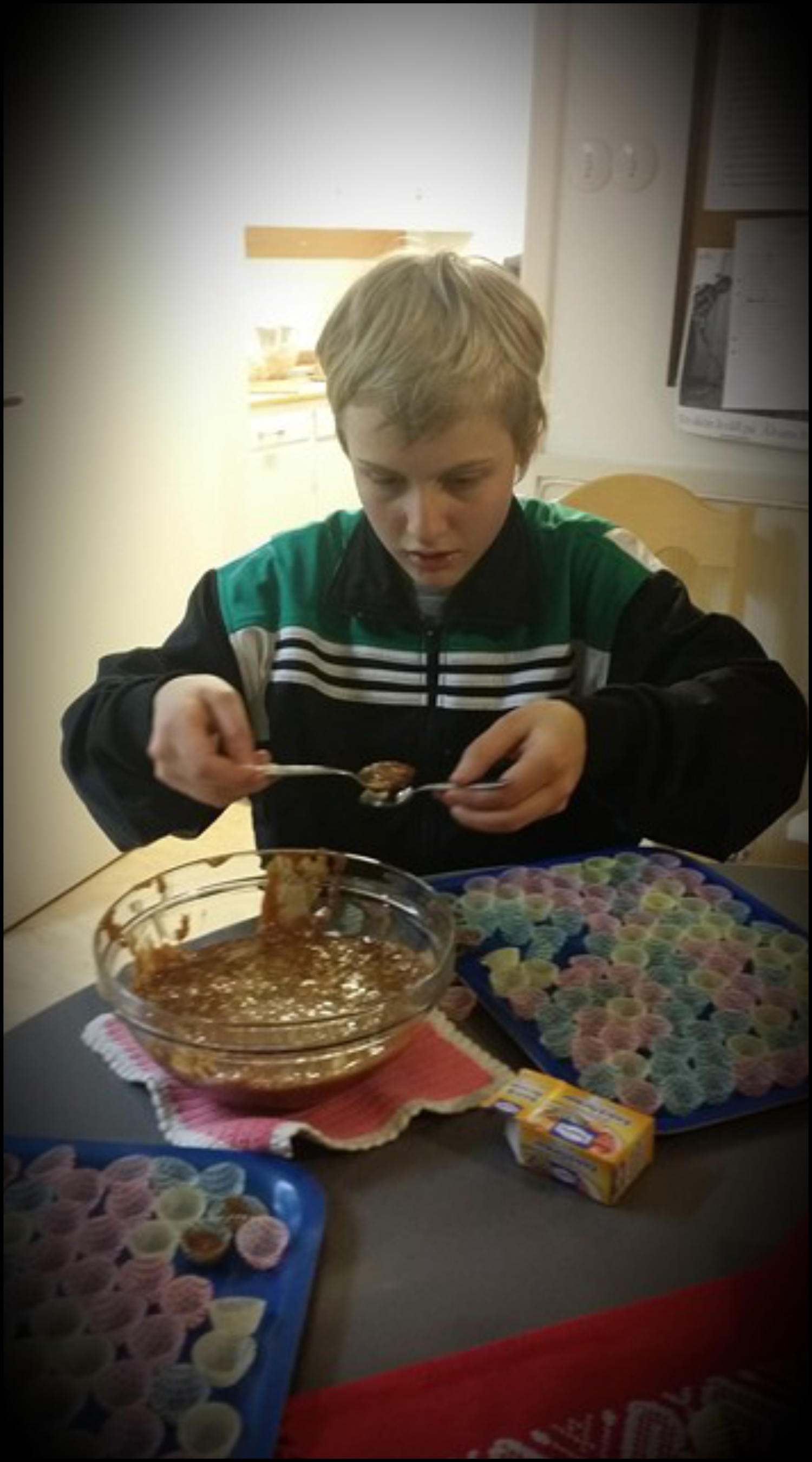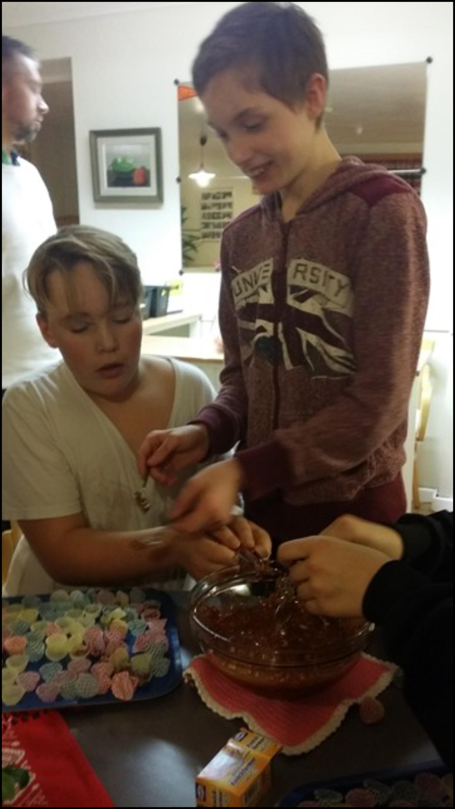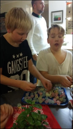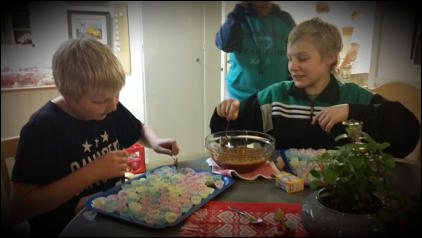 Måndagen den 8:e dec. 2014 var det julgodiskväll på fritidsgården. Det kokades bland annat knäck och kola och chokladdoften spred sej