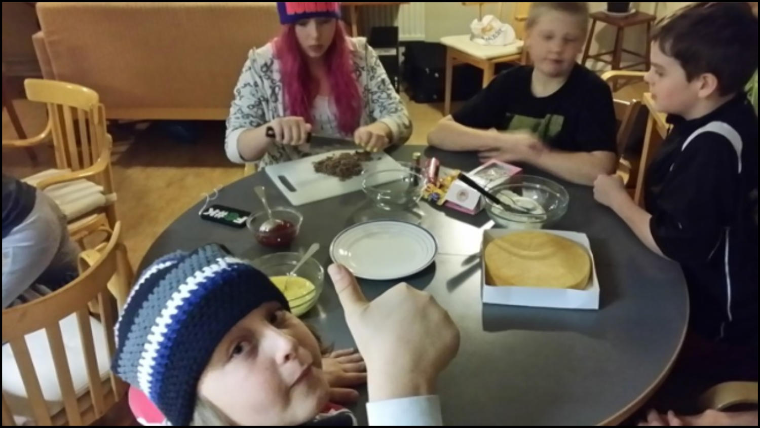 En kväll anordnades en tårttävling, där ungdomarna delades in i tre grupper och fick göra varsin